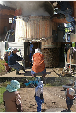I rearranged this series of work steps in the following order: [Packing the grass into the kiln] -> [Start of distillation] -> [End of post-distillation] -> [Remove the steamed dregs].