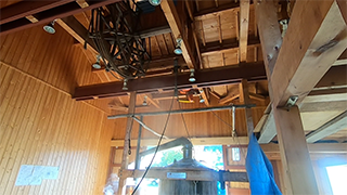Meanwhile, preparations inside the hut are also progressing. The chamber used here is called the "Tanaka style," the cover of which can be lifted up using a pulley (Photo 5). The video explains what a pulley looks like and its role.